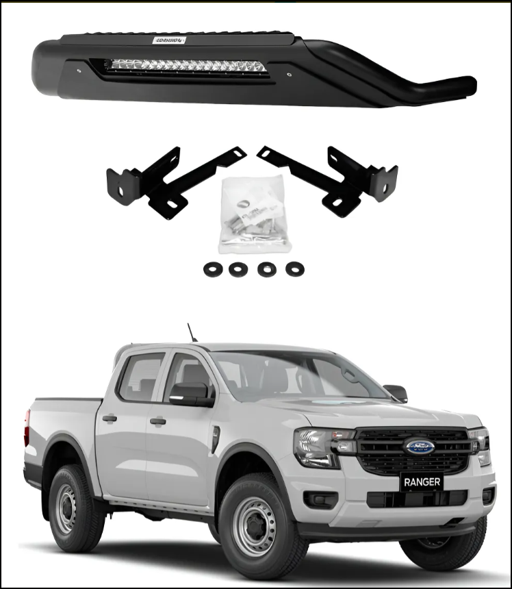 Nueva defensa con un diseño de estilo angular moderno que integra protección inferior al vehículo. • Cuerpo de la defensa de acero. • Panel Hexagonal realizado en corte laser que permite flujo adicional de aire •incluye es pació para  montajes adicionales para luces en el borde del skid• Disponible en negro texturizado, la La barra led se vende por separado