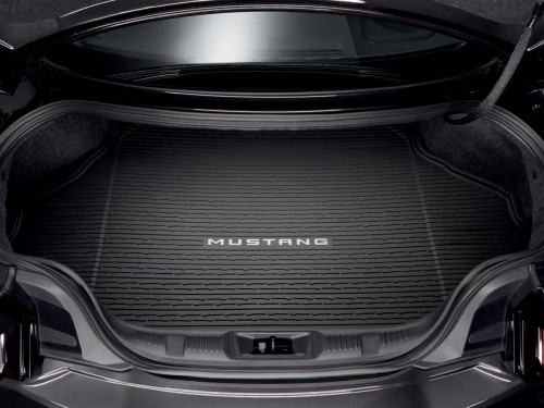 Tapete de cajuela para proteger el área de carga, en vinil color negro, NOMBRE Mustang, antiderrames. Versión sin subwoofer.